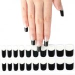 Průhledný základ s černými francouzskými špičkami nabízí elegantní a jednoduchý vzhled, ideální pro každodenní použití.