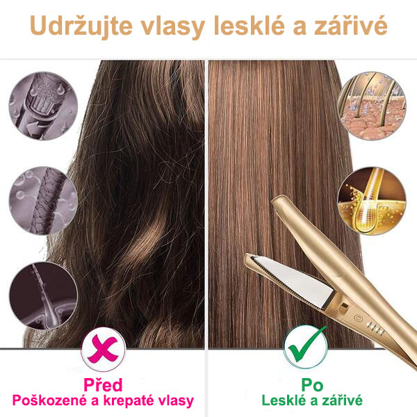 Topný model PTC a titanová deska vytvářejí lesklejší a hedvábnější povrch v kratším čase a eliminují krepování s menším poškozením. Vhodný pro všechny typy vlasů.