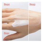 KROK 2: Naneste přiměřené množství tekutého make-upu na hřbet ruky. Pomocí štětce, houbičky nebo konečků prstů jemně rozetřete make-up od středu obličeje směrem ven pro rovnoměrný a přirozený vzhled.
