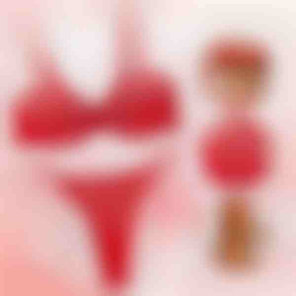 Tato červená souprava spodního prádla je ideální volbou na Valentýna! Díky složitým výšivkám srdíček a jemným detailům z průsvitné síťoviny je tato souprava navržena tak, aby podtrhla váš romantický půvab.