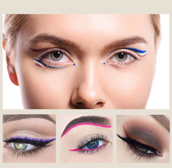 16x Jednotlivé tekuté oční linky: černá, hnědá, modrá, fialová, žlutá, červená, zelená, bílá