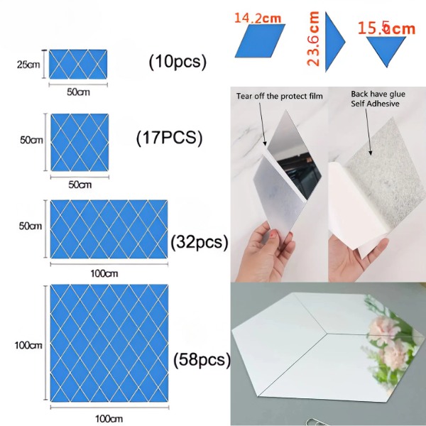 Materiál: akrylové zrcadlo s ochrannou fólií (před použitím odstraňte)