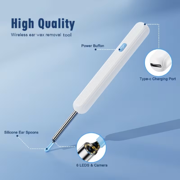 Vestavěná kamera 1080P se 6 LED světly poskytuje jasný pohled do zvukovodu.