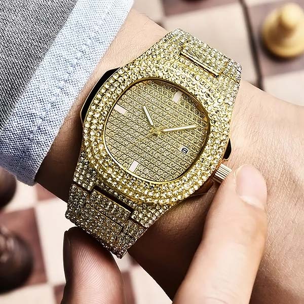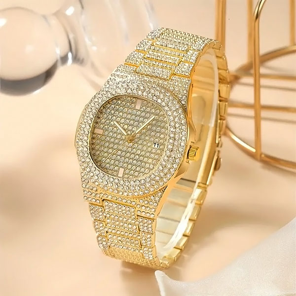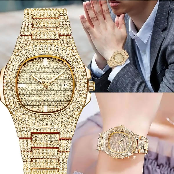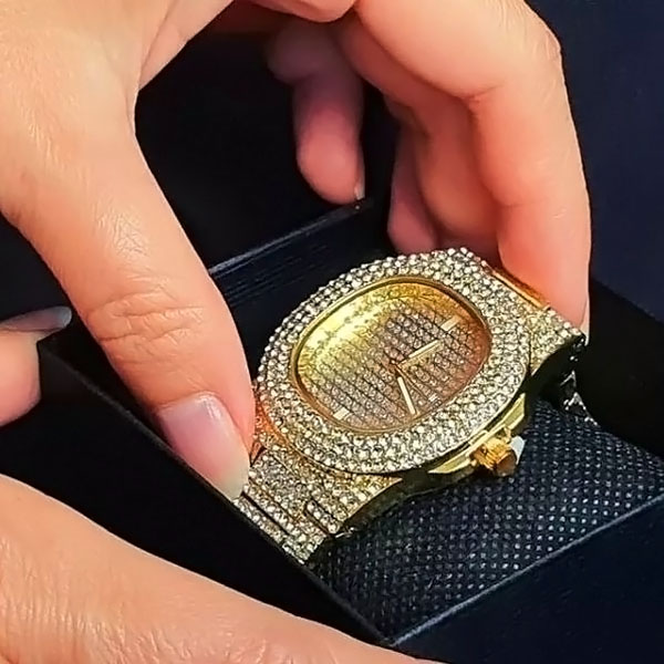 Tisíce třpytivých krystalů dělají z těchto hodinek poutavý kousek. Nejsou to jen hodinky – je to odvážné prohlášení luxusu a elegance.