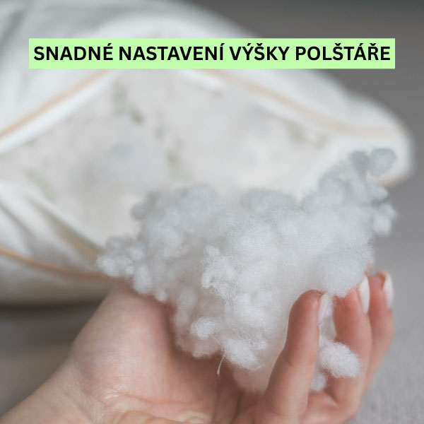 Vnitřní výplň obsahuje bambusová vlákna, která absorbují vlhkost a udržují polštář hygienický. Vysoce kvalitní mikrovláknová výplň poskytuje měkkou oporu pro dlouhotrvající pohodlí.