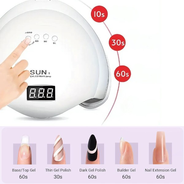S 3 nastaveními časovače (10s, 30s, 60s) můžete přizpůsobit proces sušení podle typu gelu a osobních potřeb. Inteligentní senzor se automaticky zapne, když jsou vaše ruce nebo nohy umístěny pod lampou, což zajišťuje bezproblémový zážitek pokaždé.